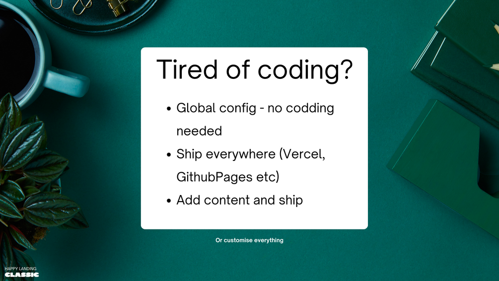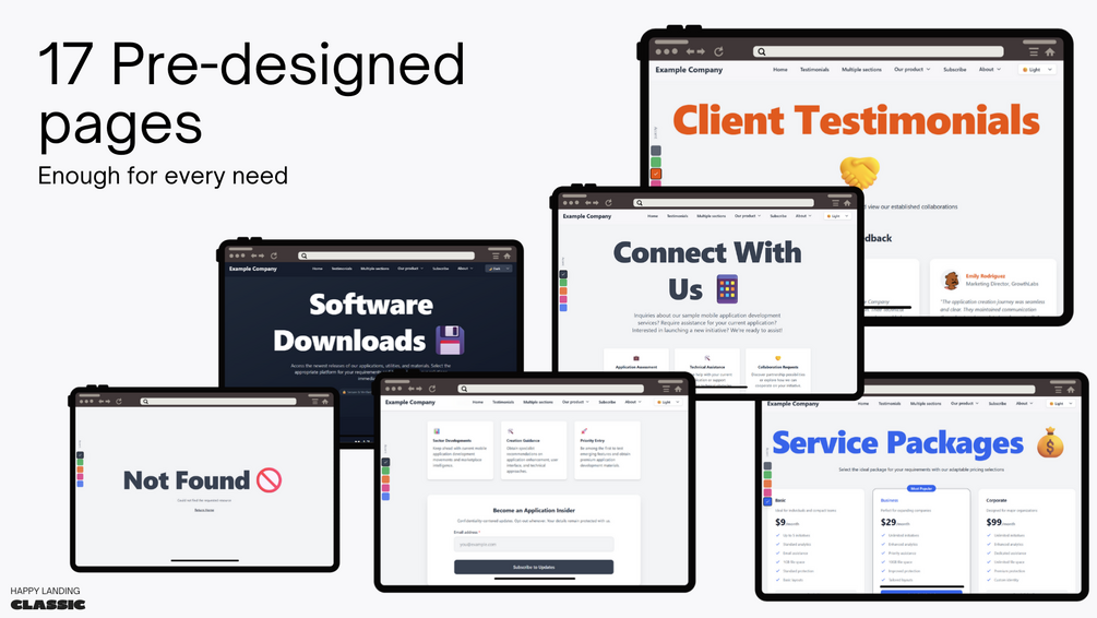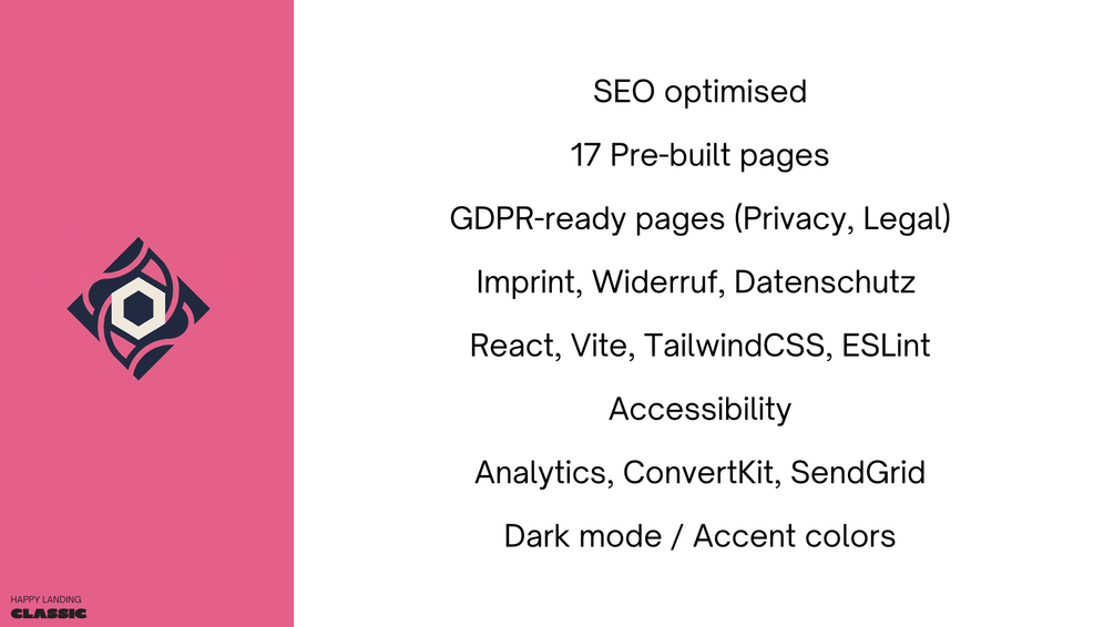 Stop building your marketing infrastructure from scratch. Happy Landing Classic is a production-grade React 19 Website Template and marketing system. Designed for developers and serial entrepreneurs, this kit provides a scalable, 17-page foundation with a pre-configured Express backend, automated SEO tools, and enterprise-level architecture.